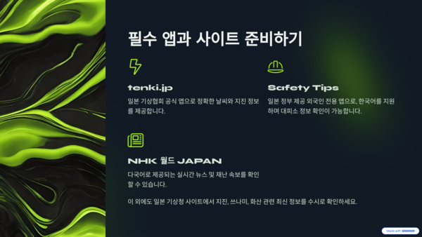 일본은 재난 대비 시스템이 잘 갖춰진 나라로, 실시간 정보를 빠르게 확인할 수 있는 앱과 사이트가 많습니다.