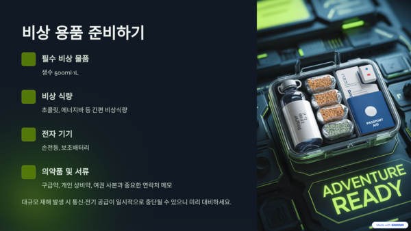 대규모 재해 발생 시 통신·전기 공급이 일시적으로 중단될 수 있으니 미리 대비하세요.