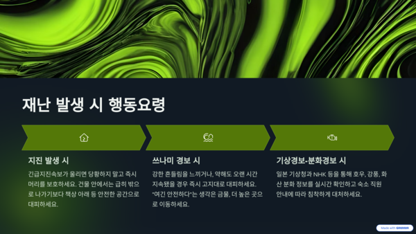 일본에선 지진, 쓰나미, 태풍, 화산 폭발 등 다양한 재난에 대비한 체계적인 대응 매뉴얼이 마련돼 있습니다. 여행객도 반드시 기본 요령을 숙지하세요.